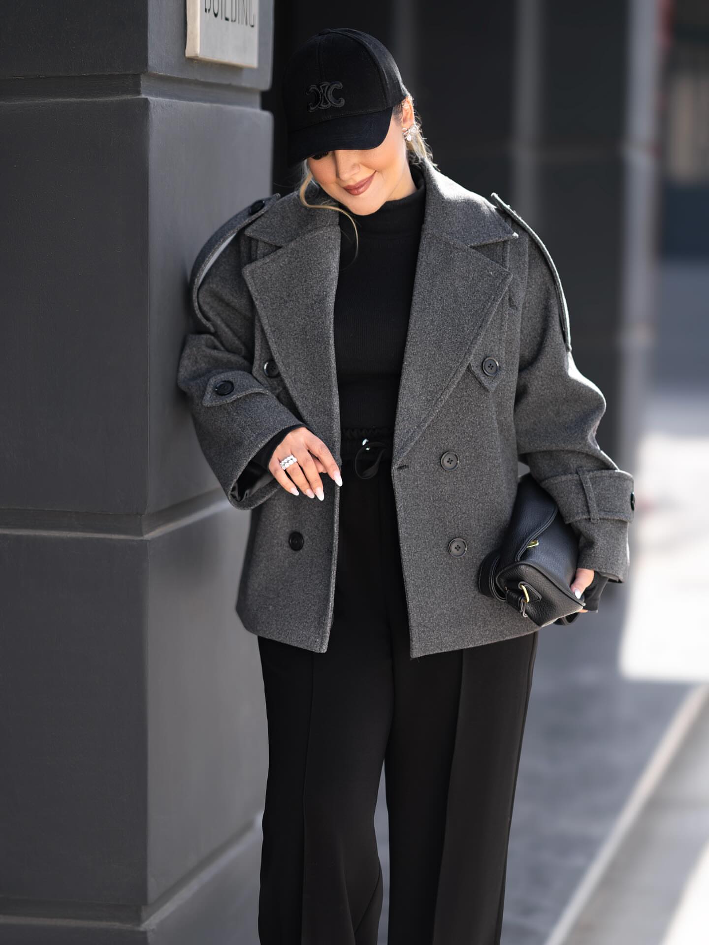 این پالتو کوتاه را میتوان با شلوار کرپ، شلوار جین یا دامنهای کوتاه ست کرد. بوتهای نیمبوت یا کفشهای پاشنهدار ظاهر شما را تکمیل میکنند. اضافه کردن شال یا کیف با رنگ خنثی استایل شما را هماهنگ و شیک میکند و جلوه لوکس پالتو حفظ میشود.